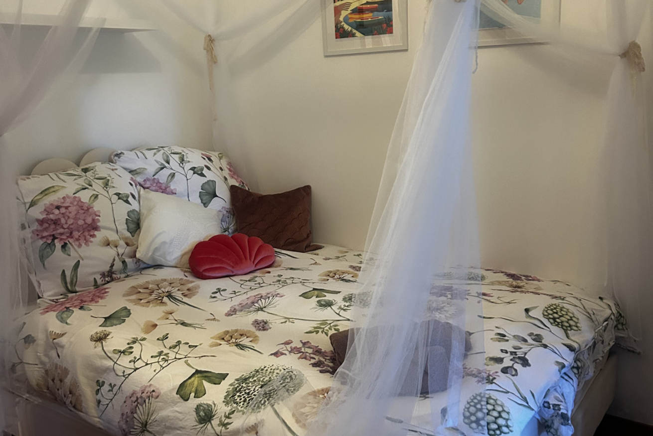 v Un'ulteriore camera da letto accogliente (letto da 1,40 m) con cassettiera e specchio per il trucco.